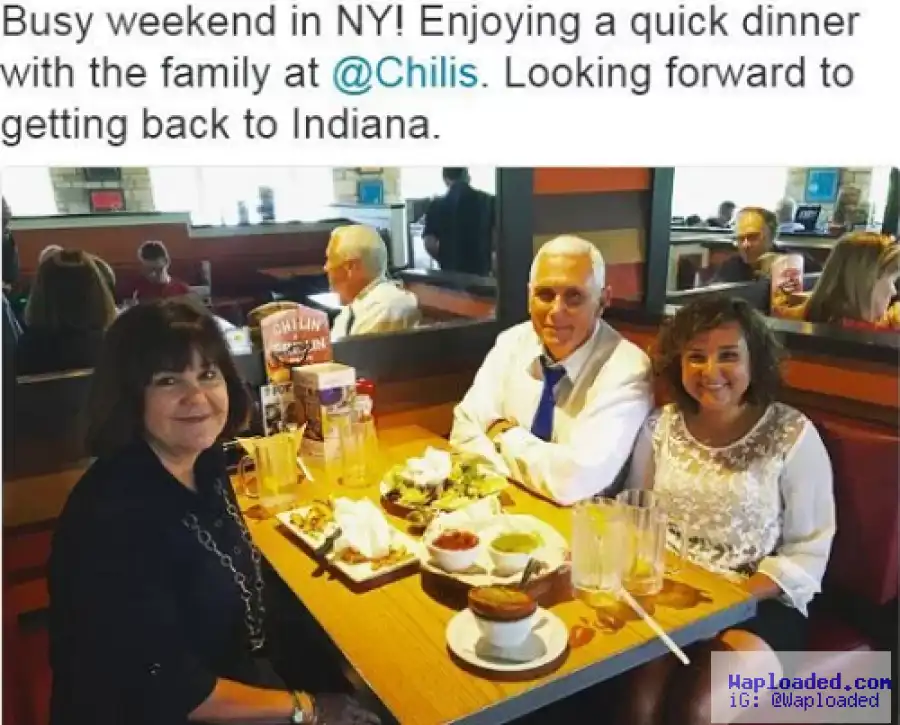 At first glance the candid snap appears to show Mike Pence, the 57-year-old Governor of Indiana, eating at Chili's in New York with his wife Karen, also 57, and daughter Charlotte.