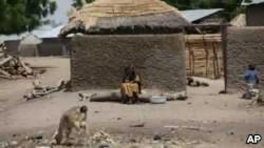 FILE - A woman sits outside her home in Chibok, Nigeria, May 19, 2014. Boko Haram fighters were overrunning villages near the northeastern Nigerian town, forcing hundreds of people to flee as the insurgents looted and burned in the area where nearly 300 schoolgirls were kidnapped in 2014, local leaders said, Nov. 22, 2016