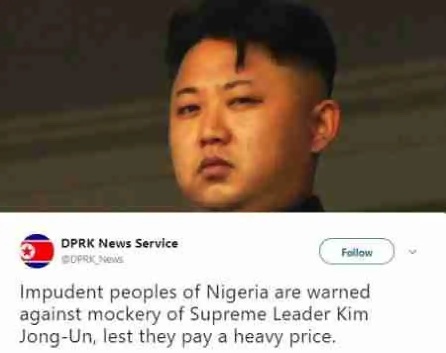 A news service from the Democratic Peoples Republic of Korea (DPRK), took to its twitter handle @DPRK_News to issue a strict warning to Nigerians to stop making a mockery of the Supreme Leader of North Korea, Kim Jong-unor pay a heavy price”.