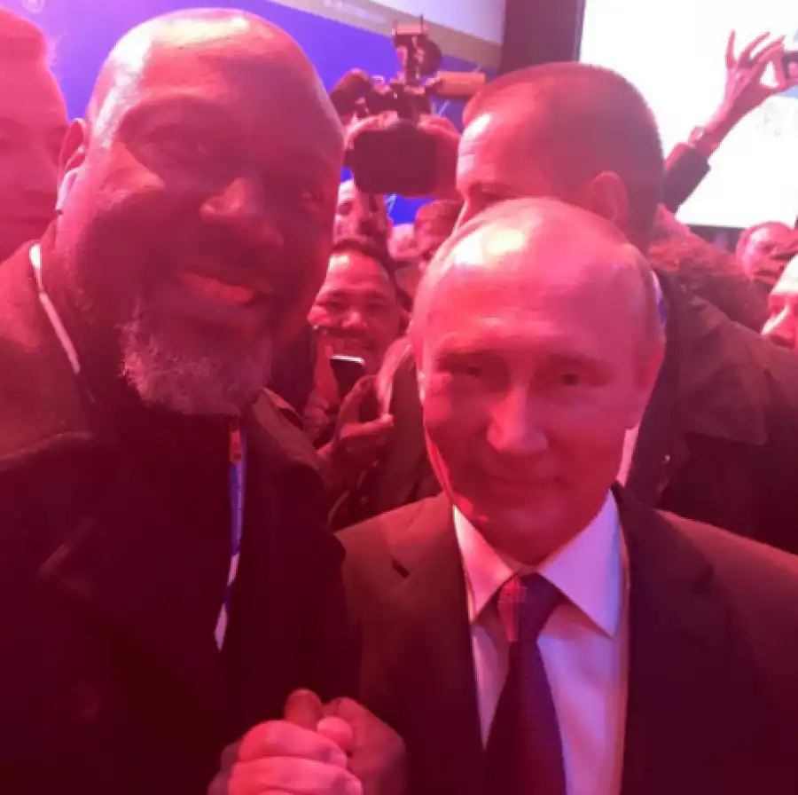 He shared the photo with the caption, 'with President Putin holding me tight today. Humble man indeed'.