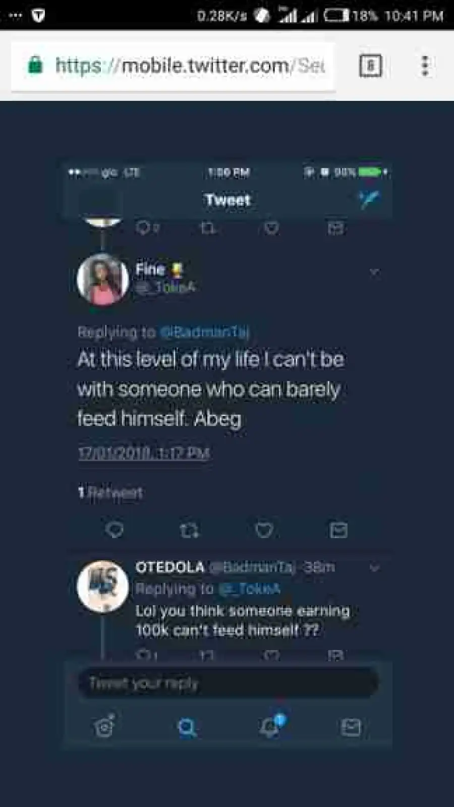Twitter Never Forgets! Lady Who Said "I Can't Marry Man That Earns N100k Monthly" (Hilarious)