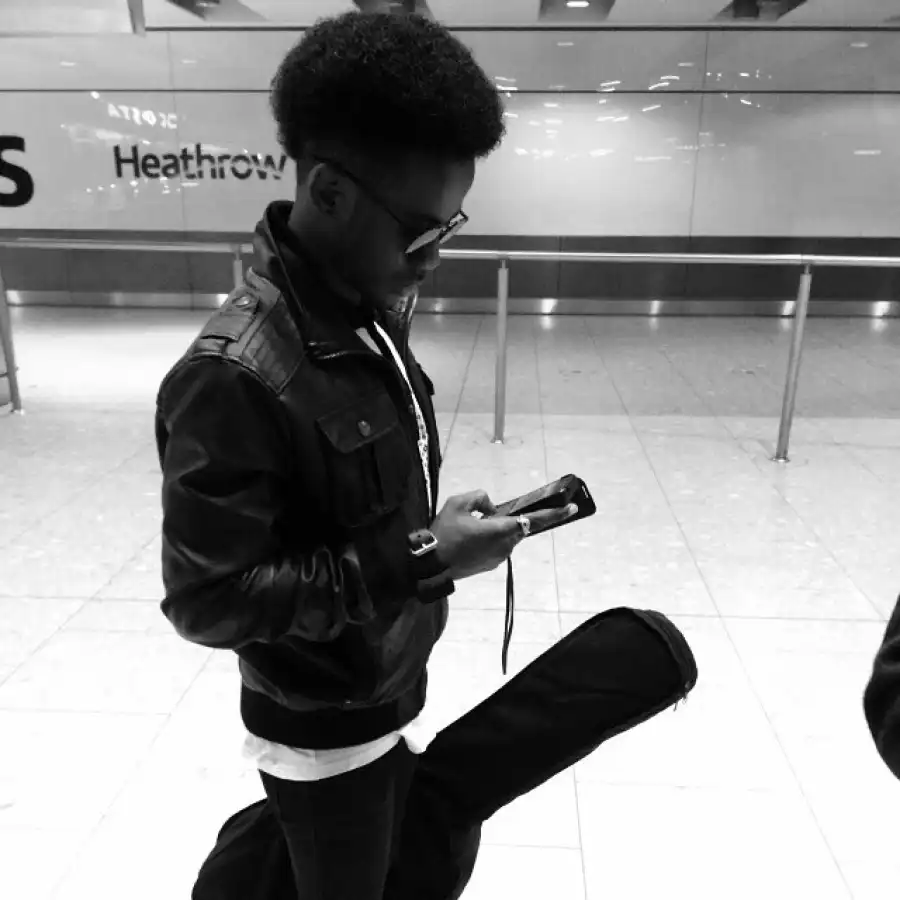 Korede on arrival at Heathrow International Airport. Photo: Instagram