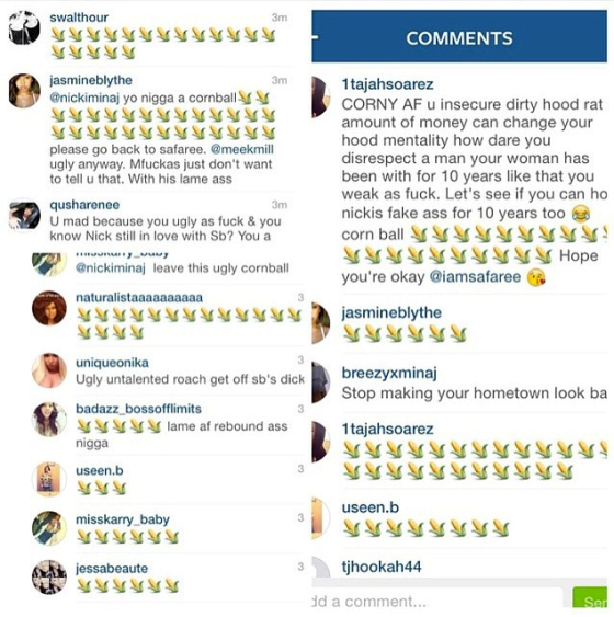 When Safaree fans heard what happened, they began trolling Meeks instagram BeyHive style dropping ears of corn...