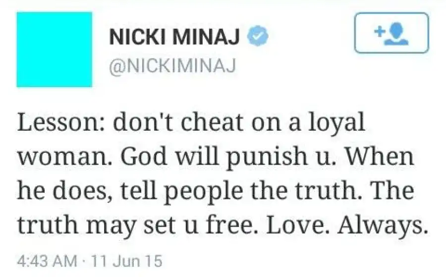 Don't Cheat On A Loyal Woman Or God Will Punish You - Nicki Minaj To Ex - Boyfriend [After He Dissed Her On Song]