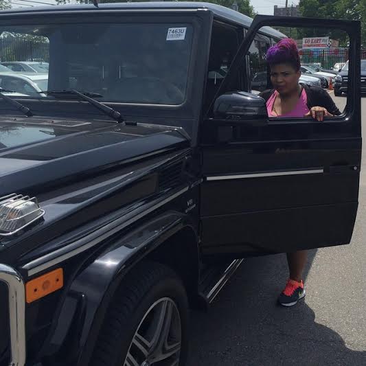 Yoruba actress la!de Bakare, who is currently in New York on holiday, went shopping for some designer items. She reportedly also got herself a new G-Wagon SUV as a gift to herself for being a hard worker. Congrats to her! Peep at more photos below: