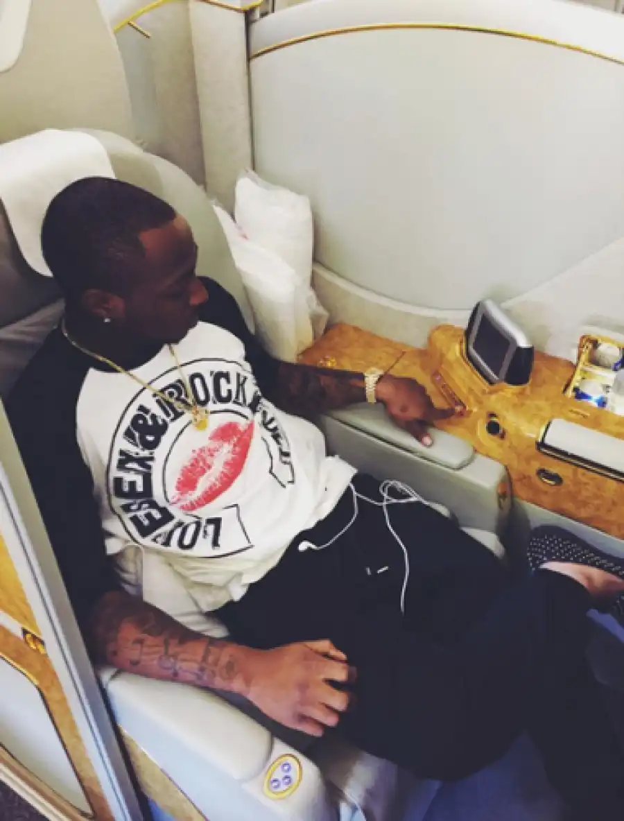 Davido Fly In Emirates First Class To U.S To Continue His Album Work [See Photo]