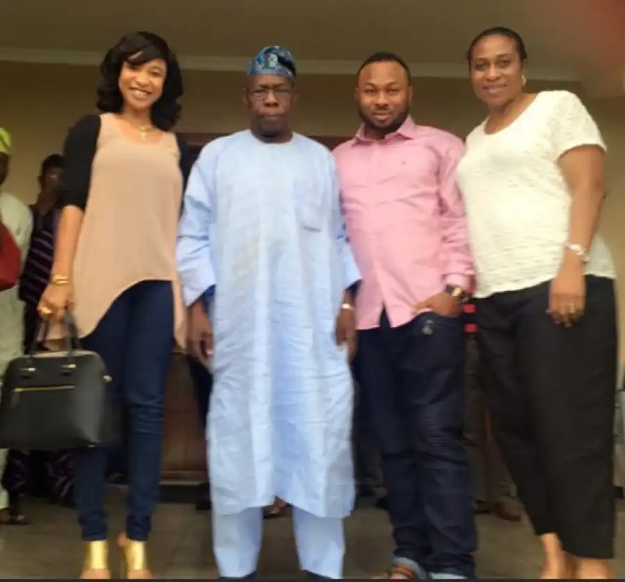 Actress/Singer Tonto Dikeh and her fiancé pictured with former president, Obasanjo.