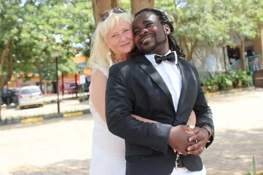 We've seen Nigerian men that did this - get married to a Caucasian women old enough to be their grandmothers. Well, meet Ugandan singer, Guvnor Ace, who literally set his country on fire yesterday after he tied the knot with his 68 year-old heartthrob, Mona Lisa Larsson.
