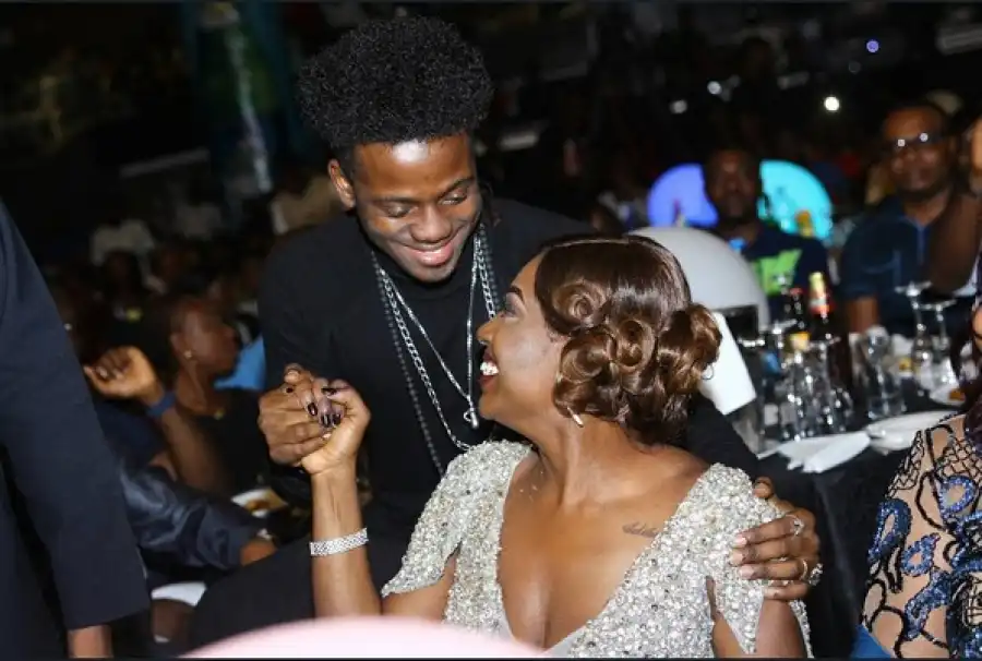 Checkout the $exy smile on his face as he gives Annie Idibia a gentle hug at 2face Idibia’s concert. [ads4]