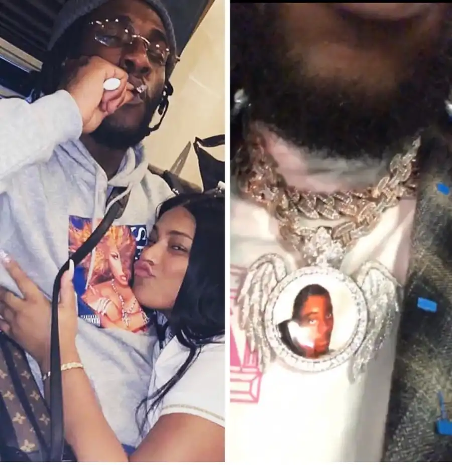 Stefflon gave Burna Boy a new ice “Gambo” chain, in memory of his best friend. The jewelry has the photo of his late best friend “Gambo” showing on it.
