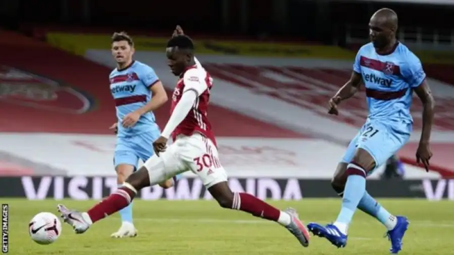 Arsenal boss Mikel Arteta praised his side’s mental strength after Eddie Nketiah’s late winner maintained their 100% start to the season against West Ham.