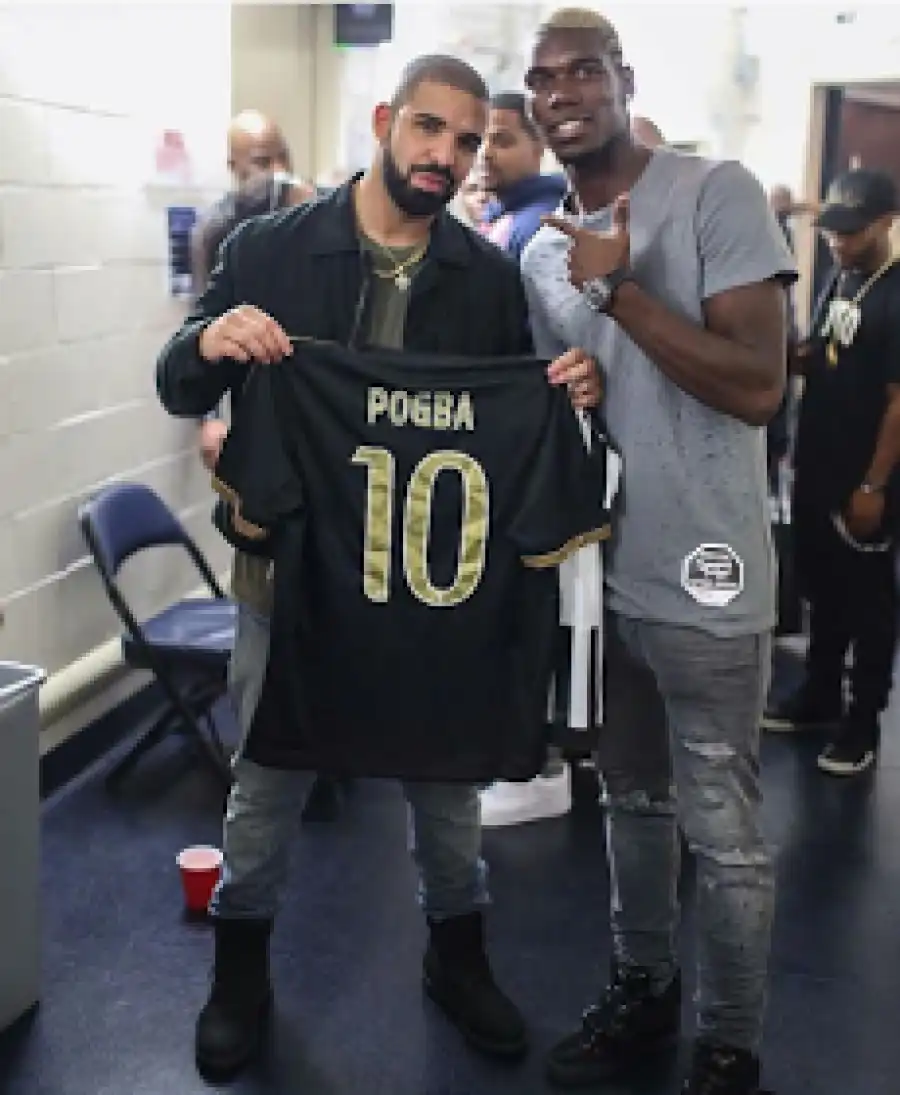 Rapper, Drake and Juventus/French player Paul Pogba were pictured partying in New York in the early hours of Saturday morning as the footballer prepares for a record breaking £100m move to Manchester United. Drake uploaded a photo of himself holding a Pogba Jersey and captioned it 'When Paul Pogba comes to see you that's a ," while Pogba captioned his 'Very nice meeting you bro' More photos after the cut...