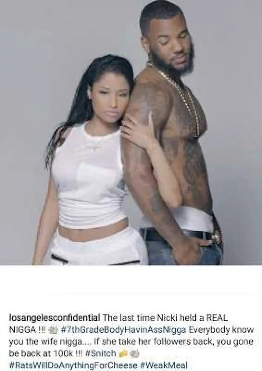 Then Meek Mill posted a photo of himself with Nicki Minaj with both middle fingers up. Then The Game shared a photo of himself with Nicki Minaj saying he was a real man and not Meek