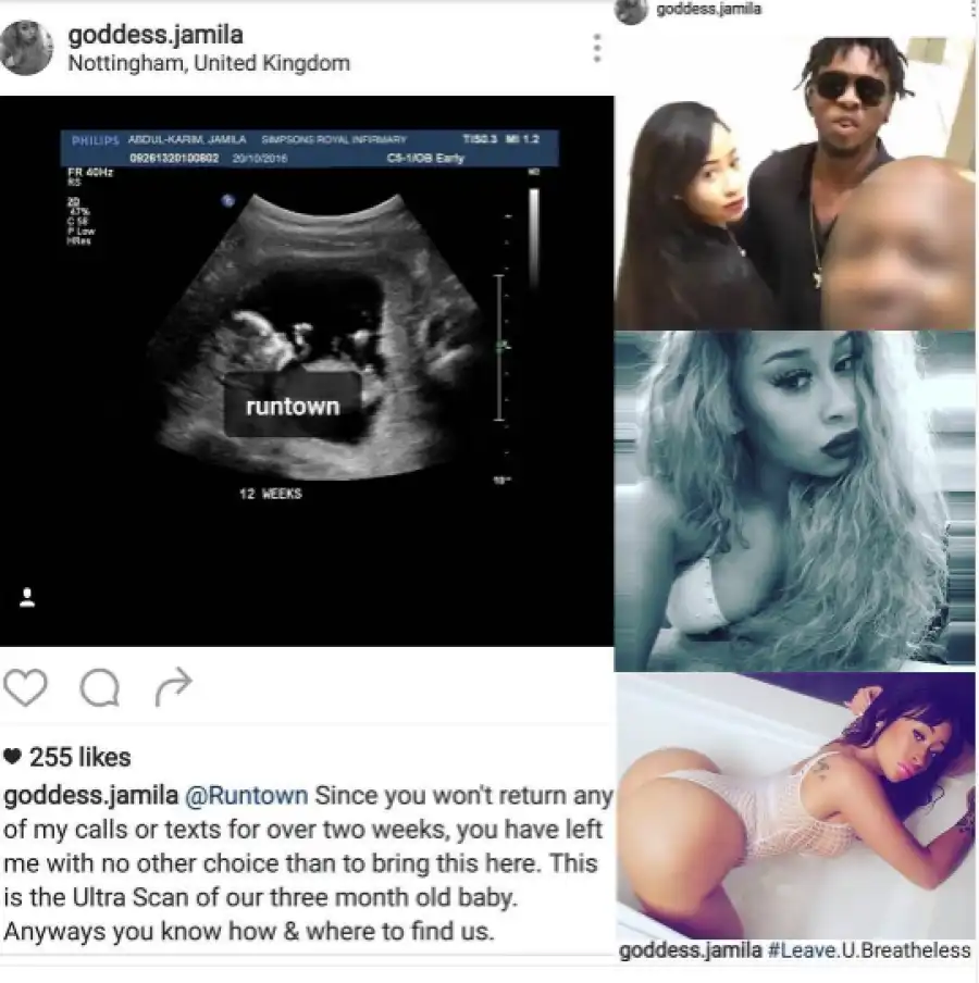 Goddess Jamila is a model who is claiming she's currently 3 months pregnant for Nigerian singer, Runtown.