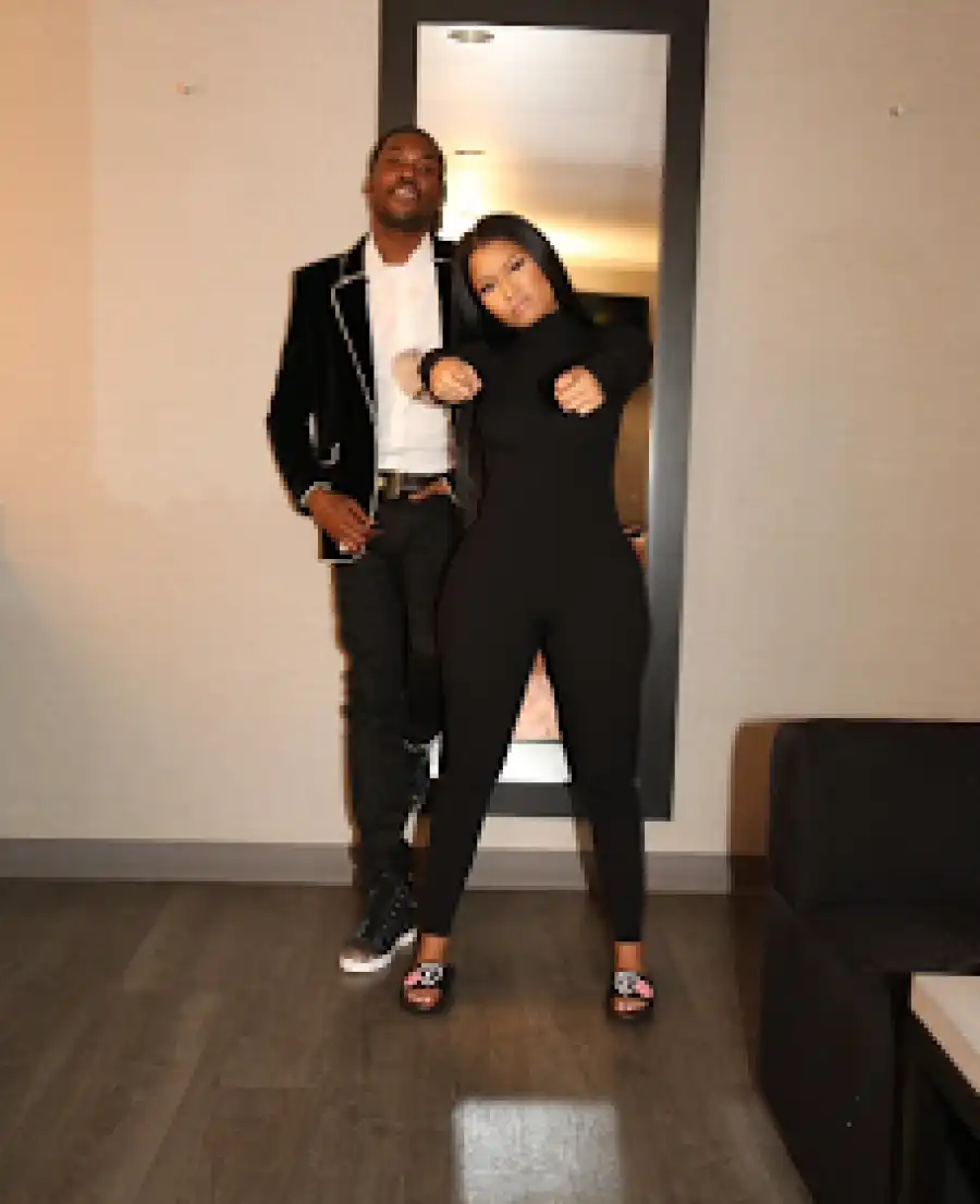 Rapper, Nicki Minaj posed with her boyfriend, rapper, Meek Mill and captioned one of the photos