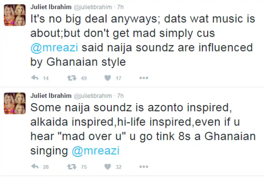 Ghanaian actress, Juliet Ibrahim gave her support to Mr Eazi after he said Ghana influenced Nigerian music sound.