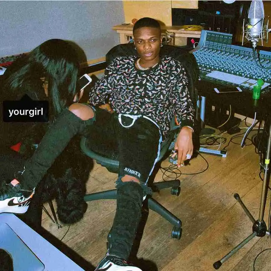 Wizkid has caused a frenzy on the internet with his recent post. The singer shared a picture on social media, showing himself and an unidentified lady who he tagged ‘your girl,’ in what looks like a studio. The picture has evoked several reactions on social media as everyone seems to be suspecting its a shade. If indeed it is a shade, then whose girl was Wizkid with in the picture? Share your thoughts in the comment section.