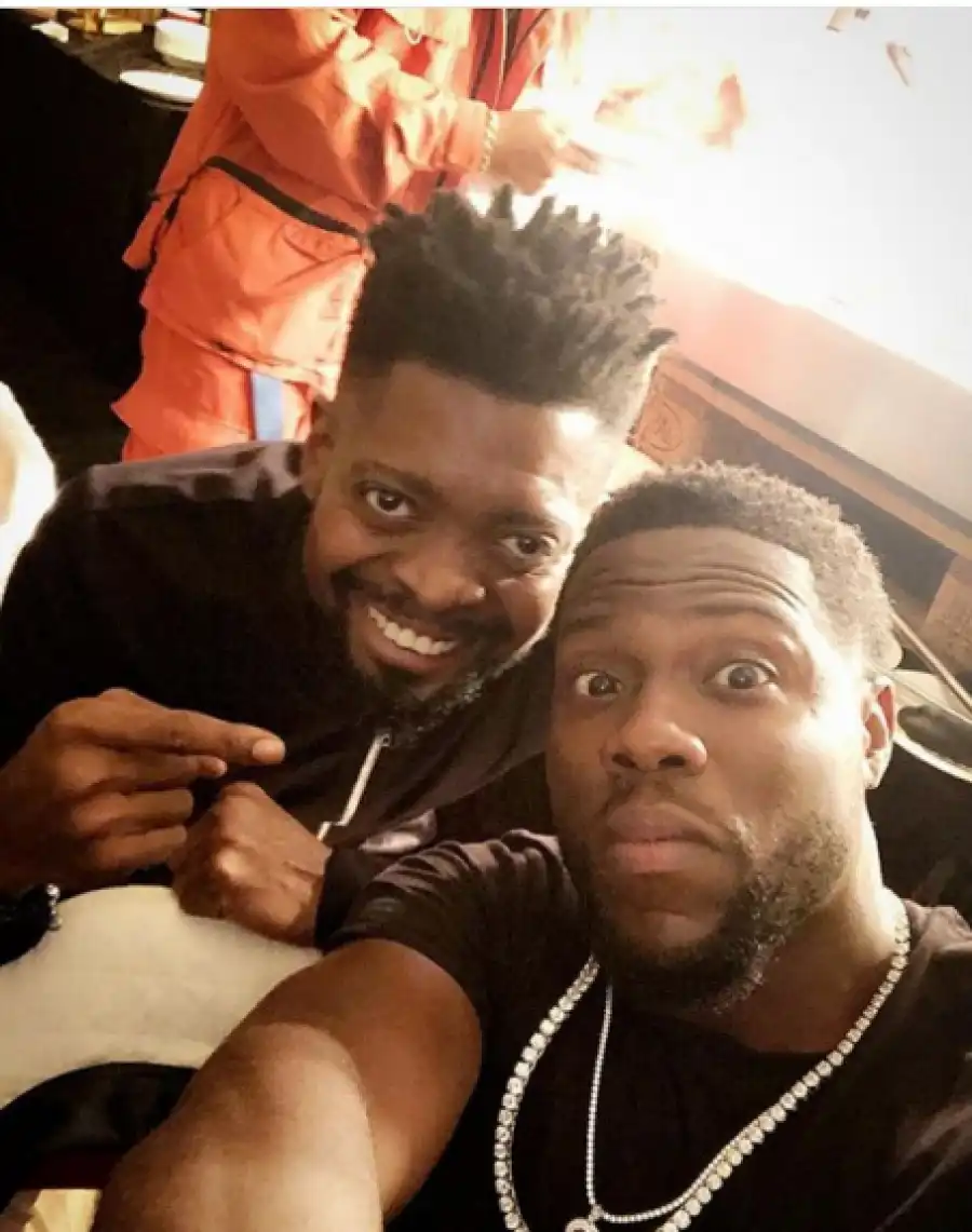 Nigerian comedian, Basket Mouth who pictured with American comedian, Kevin Hart posted the photo and captioned it, "2 of my favorite comedians in 1 picture."