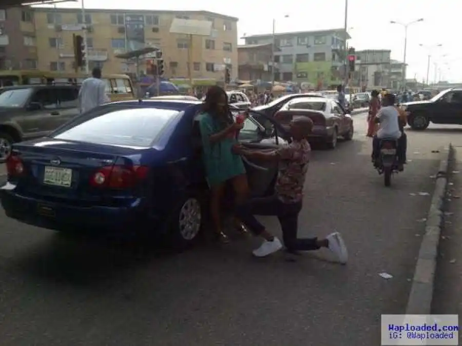 See How This Guy Proposed ToHis Girlfriend On The Main RoadIn Ojuelegba (Photo)