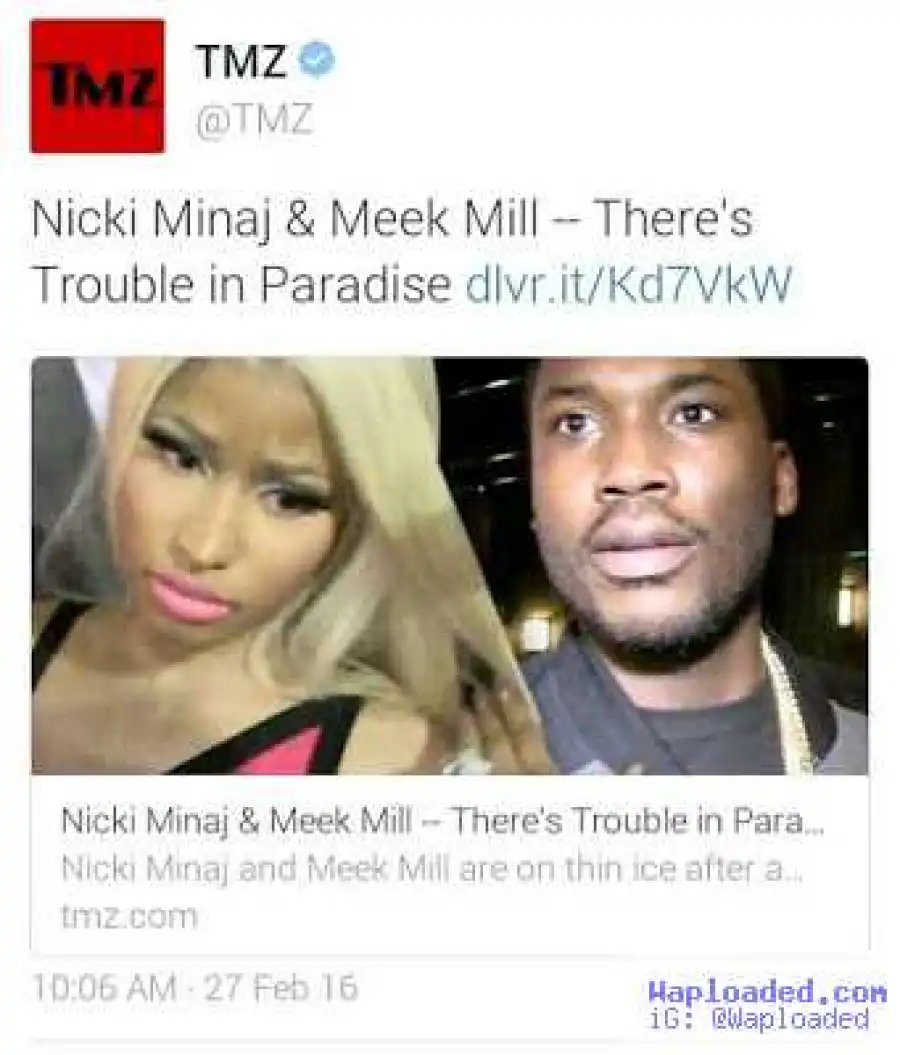 See How Nicki Minaj reacts to TMZ’s report on the alleged fight between herself & MeekMill