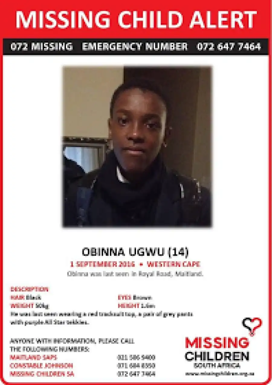 14-year-old Nigerian boy missing in Cape Town, South Africa