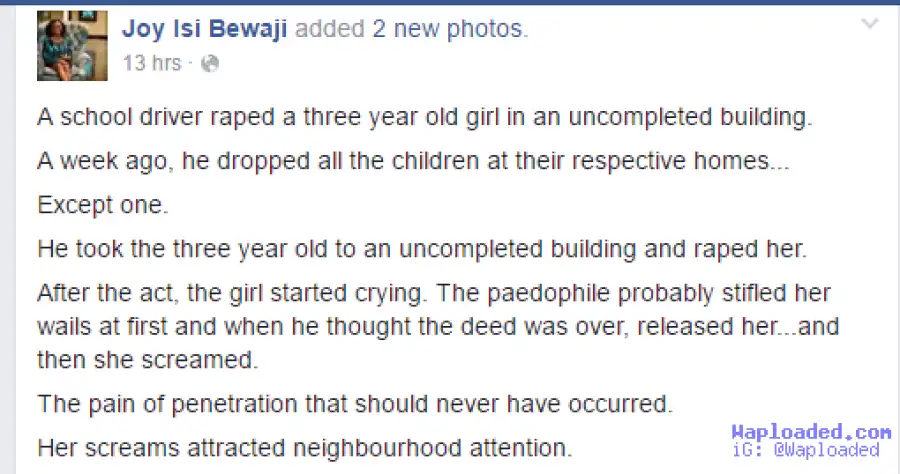 Joy Isi Bewaji Rains Curses On School Driver Who Raped 3-Year Old Girl