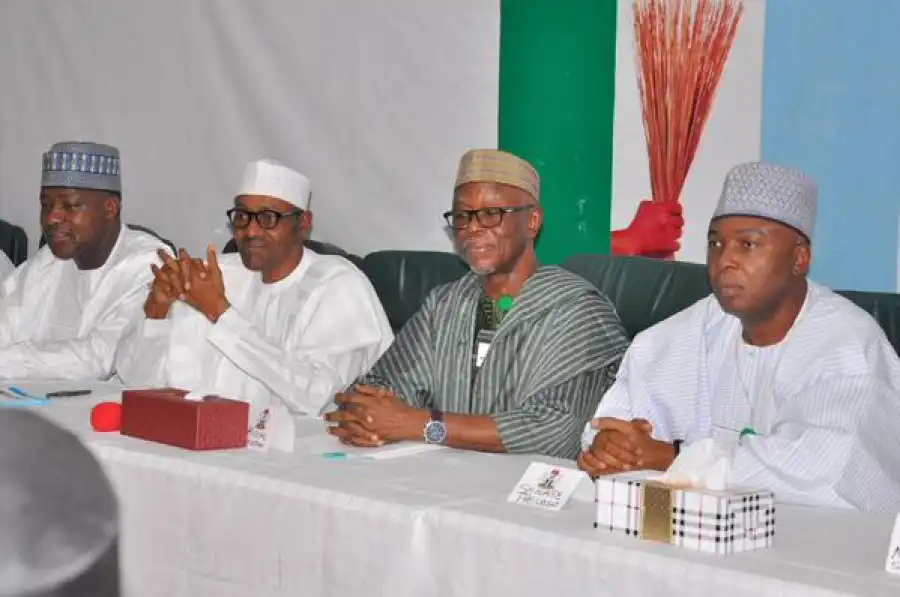Photos Of Pres. Buhari, Saraki, Oyegun, Dogara At The NEC Meeting Today