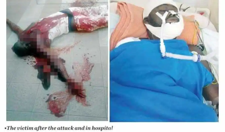 A picture of the victim shared by the police after the attack showed him on the ground in a pool of blood with flesh hanging from a side of his jaw.