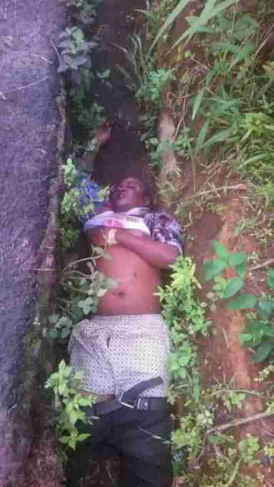 Here’s a graphic photo of Rev.Fr. Cyriacus Onunkwo., a Catholic priest in Imo state, who was murdered by unknown gunmen. Onunkwo was said to have been abducted from his vehicle in Orlu, a town in the state on Friday morning.