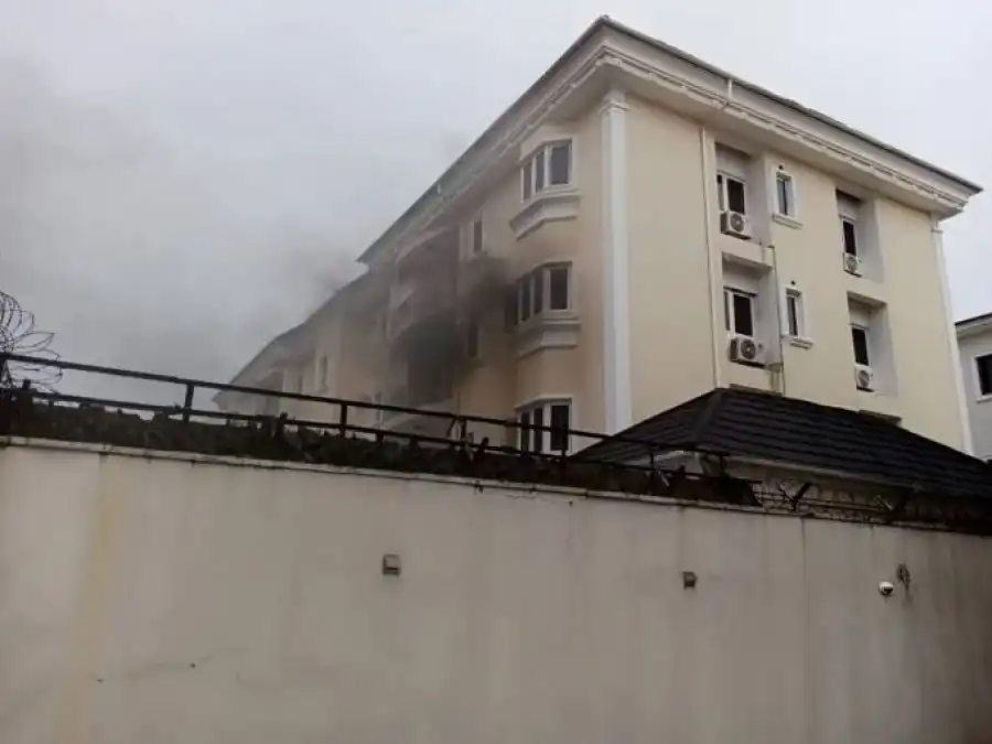 The fire incident was recorded at Liberty Apartments close to the scene of the collapsed seven storey building in the Oniru area of Lagos.