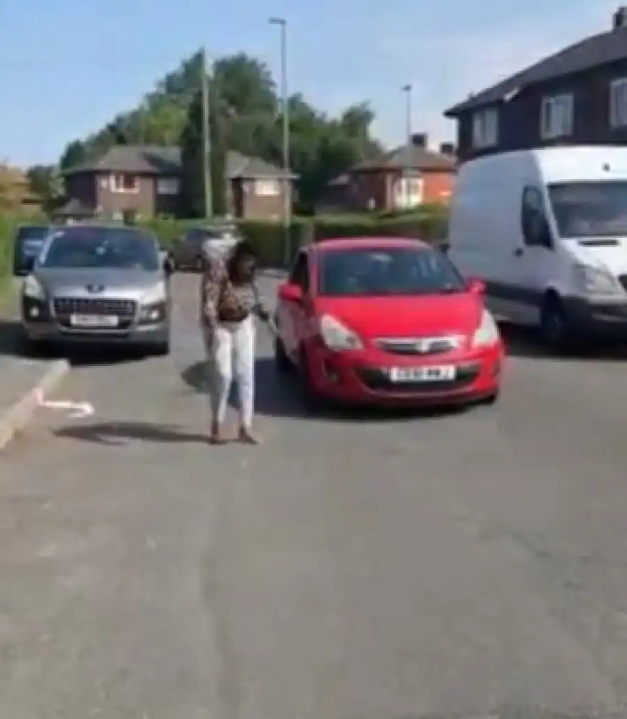 A video has captured the moment a UK-based Nigerian lady created a scene in the neighbourhood after her husband called the police on her.
