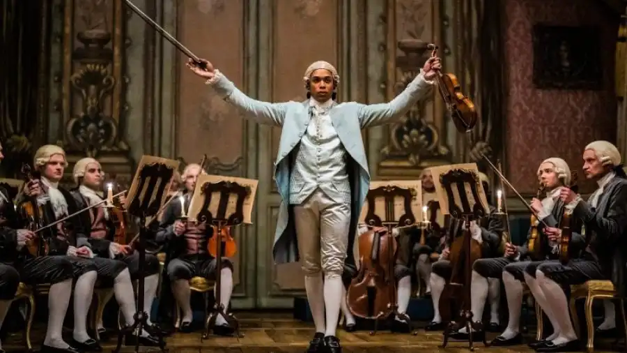 “Inspired by the incredible true story of composer Joseph Bologne, Chevalier de Saint-Georges,” reads the synopsis. “The illegitimate son of an African slave and a French plantation owner, Bologne (Kelvin Harrison Jr. in a tour de force performance) rises to improbable heights in French society as a celebrated violinist-composer and fencer, complete with an ill-fated love affair and a falling out with Marie Antoinette and her court.”