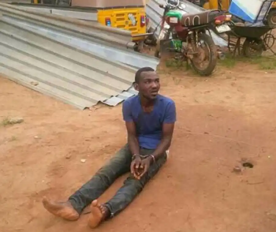 An unidentified man (pictured below) was allegedly caught this afternoon in Ikorodu carrying the head and decapitated body of a school boy in a sack.