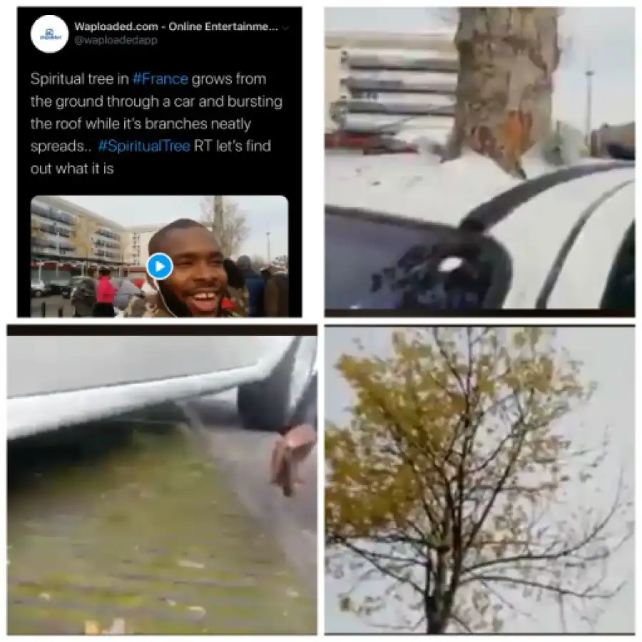 Resident's of the area took to their phones to make video of what they termed spiritual, as the owner had parked the vehicle and on waking up they saw a tree already grew to full age through the car and its stem had cut neatly through the car's roof, the roots were very firm as if it had been planted for ages.