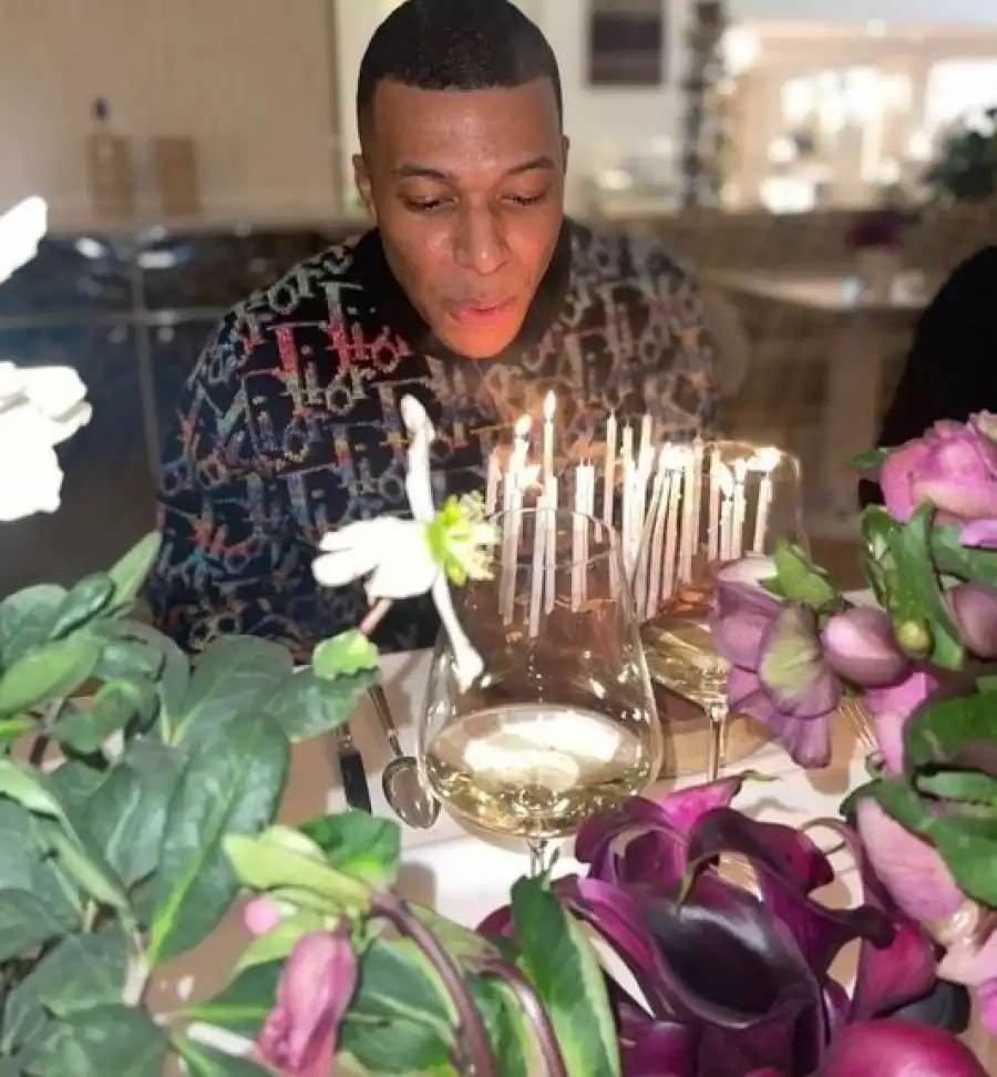 The French star striker shared a photo of him blowing out candles to mark his 24th birthday.