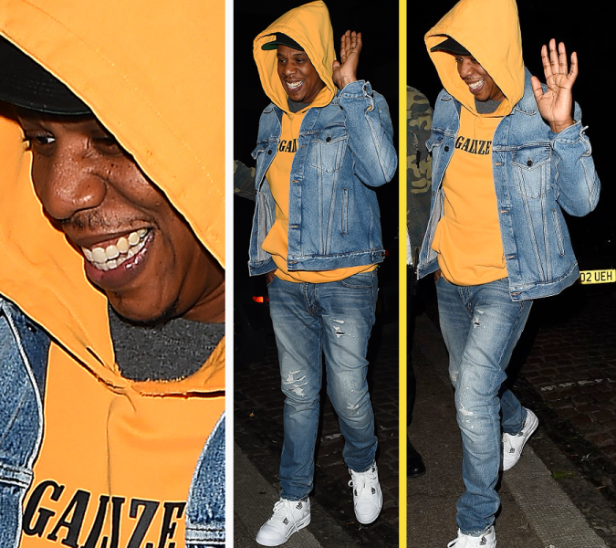 Jay Z pictured leaving a London night club moving in an almost feminine way...wonder what made him so happy...lol. See the full pic below...