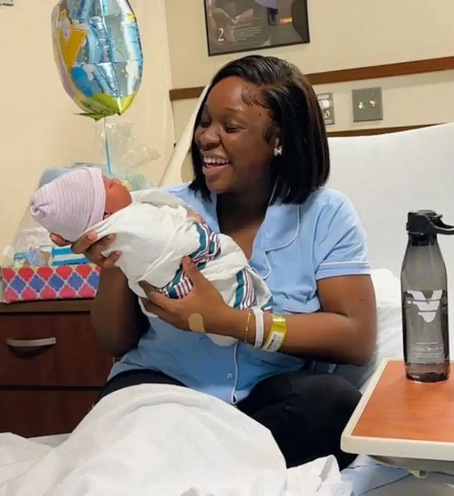 Adeoye who shared the news on Instagram, said she welcomed her son at 11:24am on the 17th of March 2023.