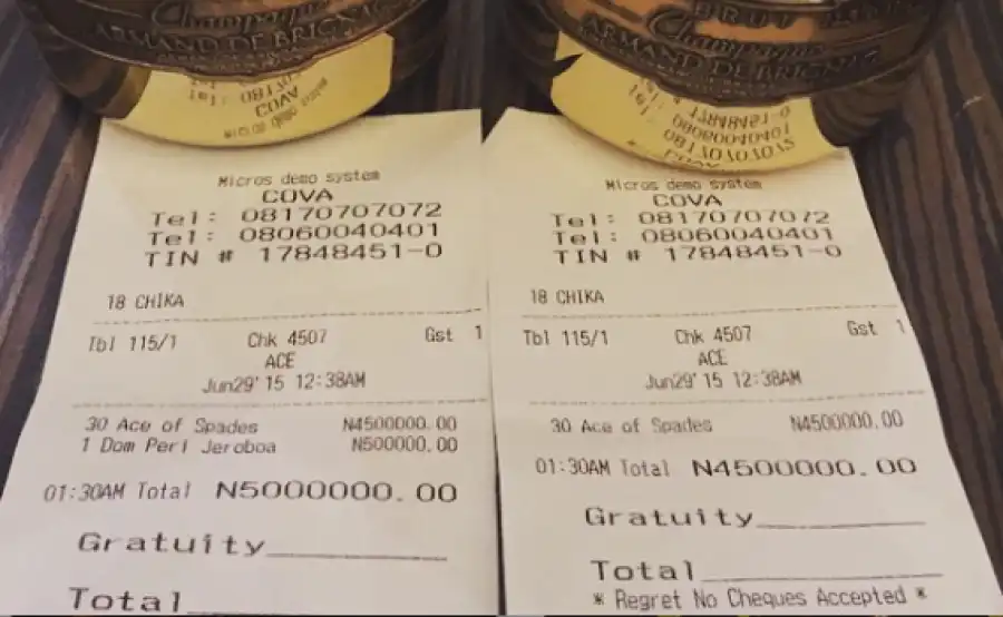 South Africa Based Nigerian Man Spends N5million On Drinks In A Lagos Club (See Receipt)