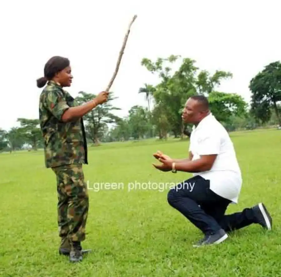 Check out pre-wedding pics of a Nigerian soldier & her groom-to-be
