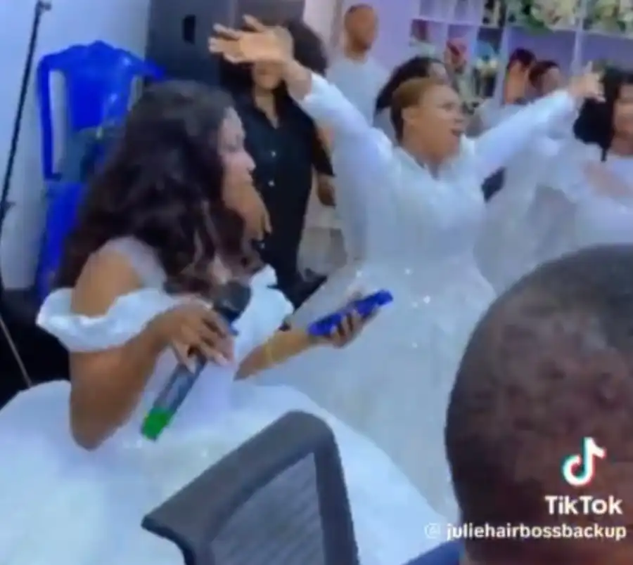 Single Women Spotted Wearing Wedding Gowns While Praying For Husbands At A 'Spiritual Event' (Video)