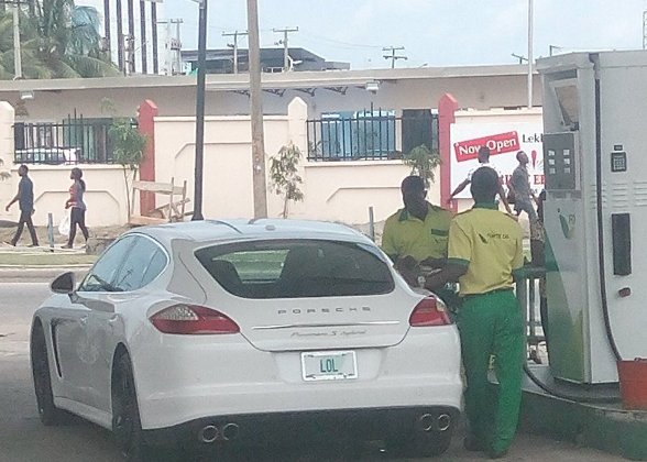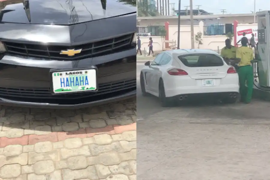 One reads 'Hahaha', the Porsche reads 'Lol'. The owners of the cars must be related...lol
