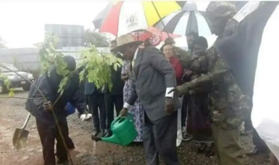 LoLZ.... Ugandan President Mocked For Watering Plant During Heavy Downpour (Photo)
