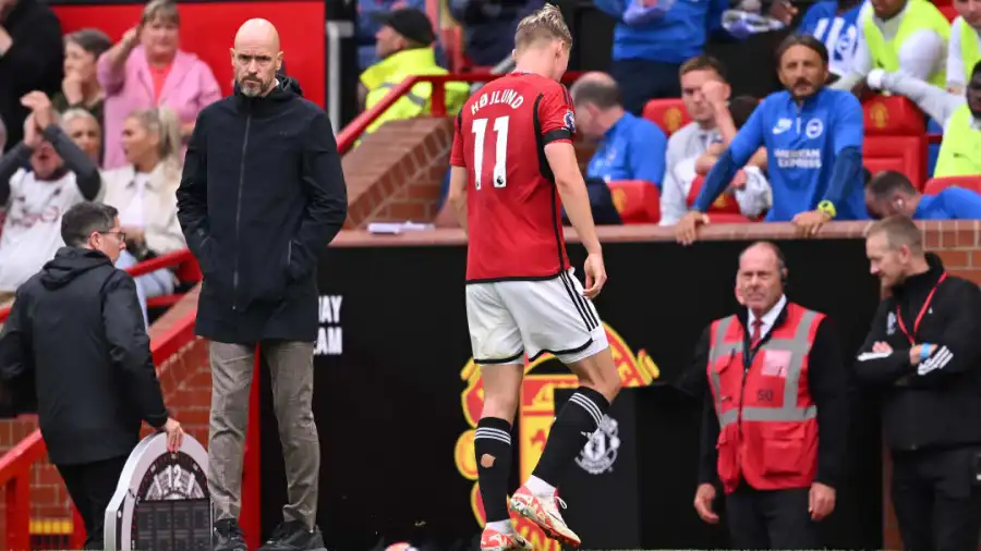 Ten Hag opted to withdraw Hojlund, who was making his first start for United since his summer move from Atalanta, with just over 25 minutes remaining and the hosts already 2-0 down.