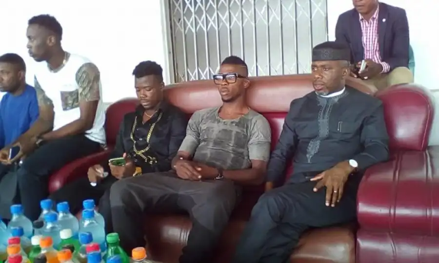 Manchester City Striker, Kelechi Iheanacho was spotted chilling with his friend and brother at the Imo state government house in Owerri.