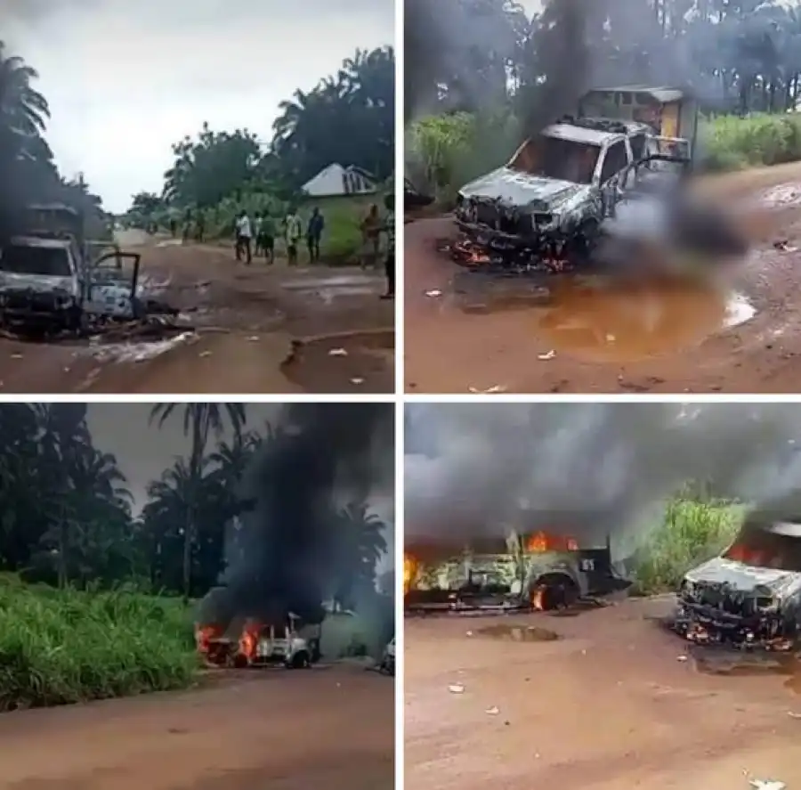 “When I got there, the two Hilux vehicles were on fire with the officers burnt beyond recognition. As I speak, Oriagu and Isinweke are blocked at the moment.