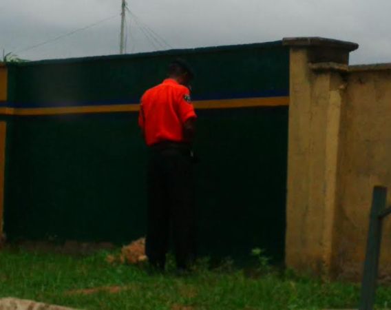 As seen on Mobolaji Bank Anthony Way, Lagos this noon. A traffic officer taking a leak on a police fence..in public. Encouraging bad bad thing..