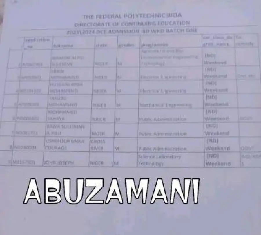 This is to inform the general public especially prospective students of the Federal Polytechnic, Bida that the school management has released the 1st Batch of ND weekend admission list of successful candidates for the 2023/2024 academic session.