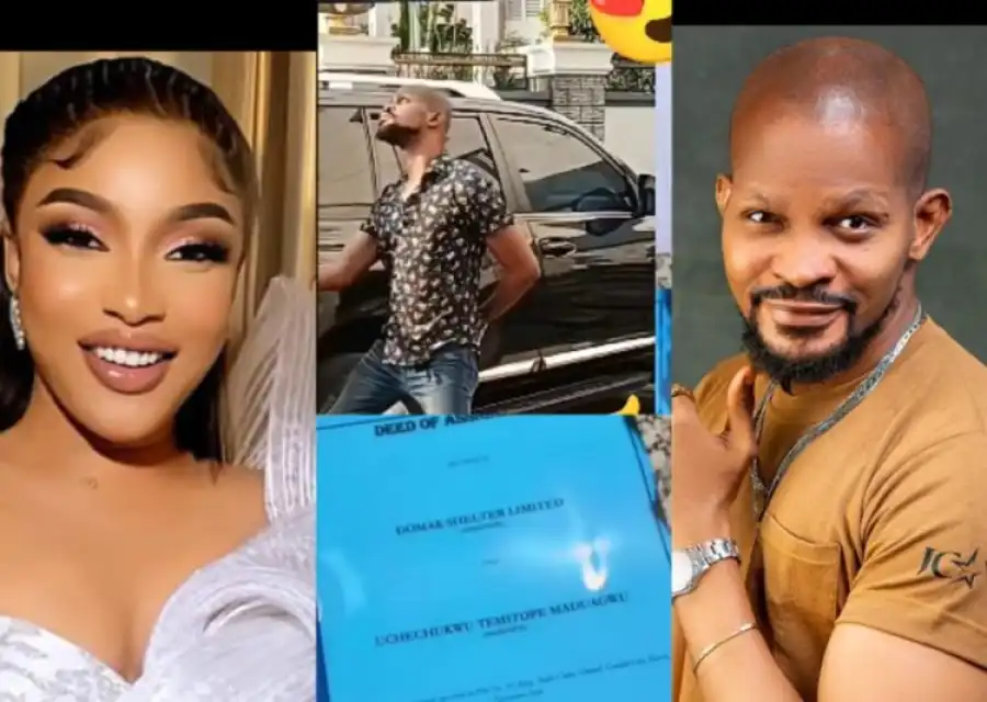 Nollywood actor Uche Maduagwu has taken to Instagram to celebrate after actress, Tonto Dikeh gifted him a plot of land and N2.5 million Naira.