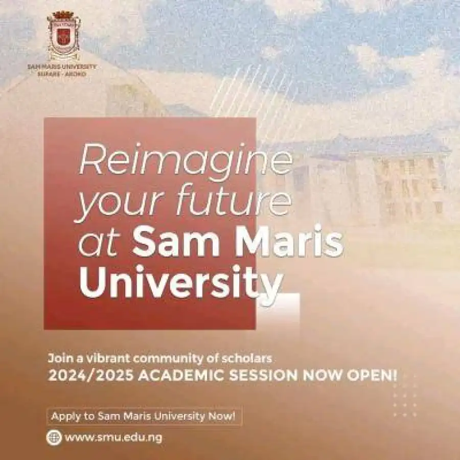 Applications are hereby invited from suitably qualified candidates for admission into Sam Maris University, Supare-Akoko, Ondo State for the 2024/2025 Academic Session.