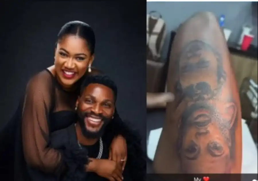 Popular reality star and actor Tobi Bakre has captured hearts with a touching gesture of fatherly love by tattooing his children’s faces on his leg.